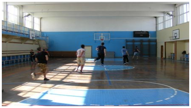 e) Sala sport: an construcţie: 1975, modernizata in 1995, zugravit, refacuta suprafata de joc in 2016, dimensiuni 35/15 m.